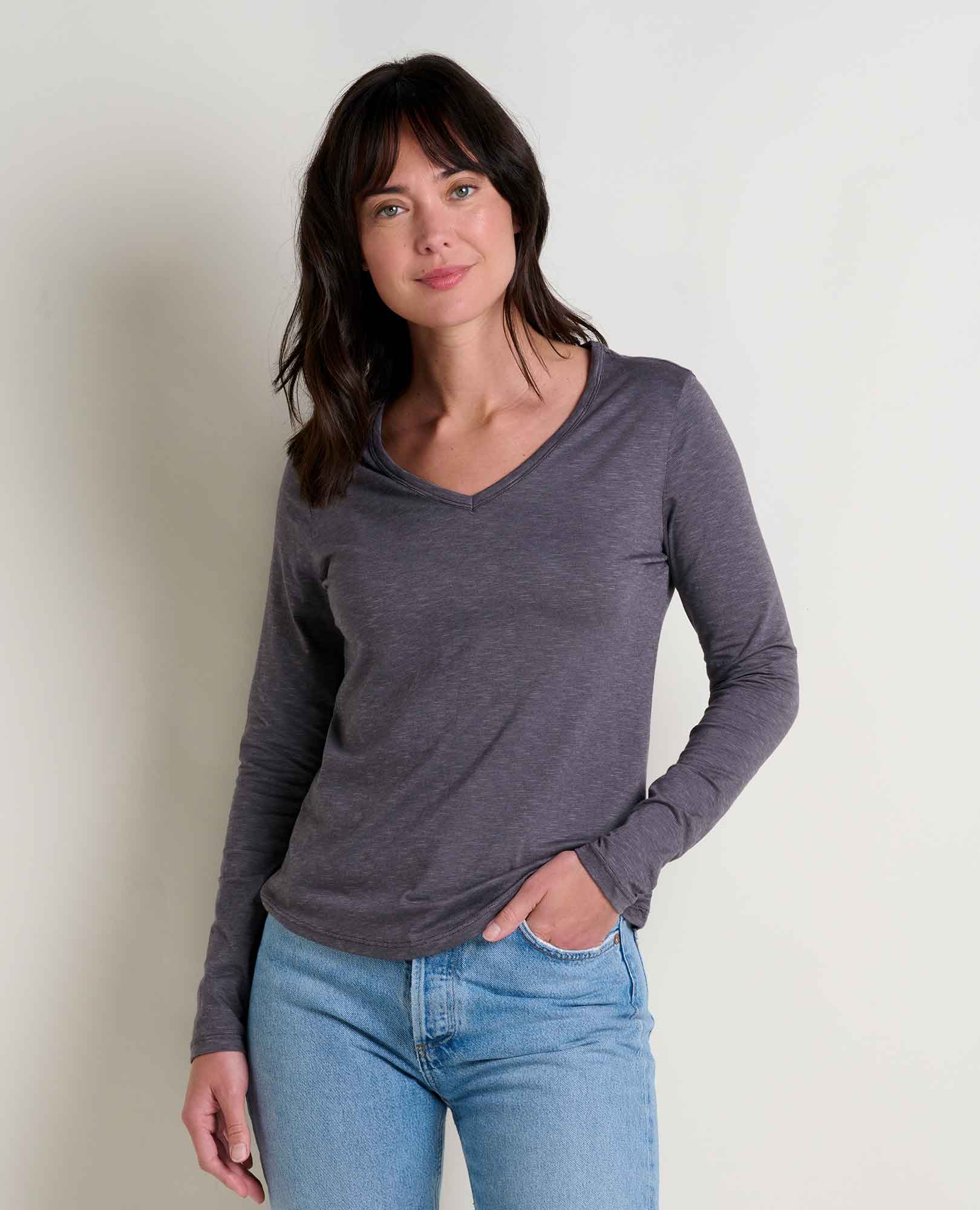 I love these shirts, they are good quality and a staple for me. I have 4 colors. And have bought similar Toad&Co v-neck shirts in the past. I love the cotton, and the stretch in them.
